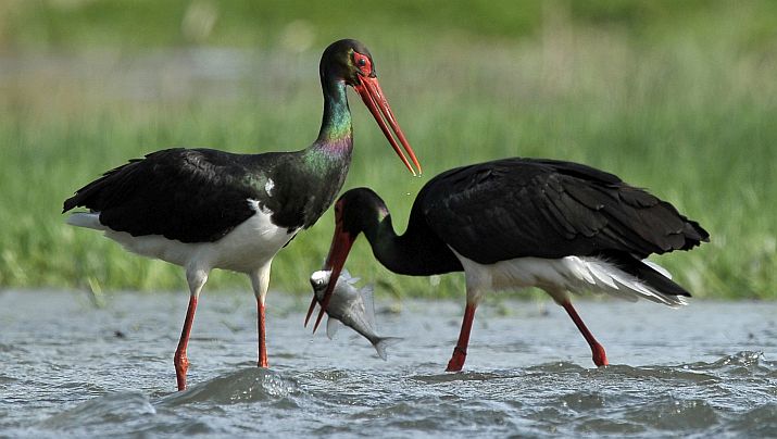 Jóízű lakomát csaptak a fekete gólyák a Tisza árterületén -...