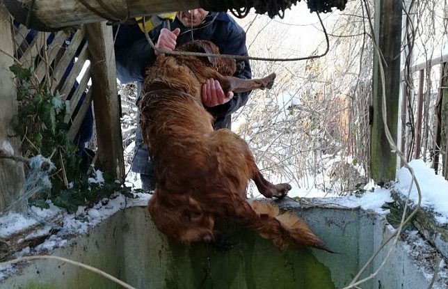 Elnézte a kutyus a kertben a kutat, óriási zuhanás lett a vége. Még jó hogy a tűzoltók gyorsan érkeztek.