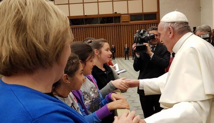 Most három kislány kapott egy fantasztikus lehetőséget, és az Igazgyöngy vezetőjével , L. Ritók Nórával egyenesen a pápához látogattak el Rómába, ahol ő személyesen fogadta őket. A szerdán lezajlott eseményen a lányok egy festményt nyújtottak át, míg Nóra a szervezetük munkájáról, és az oktatási szegregációról szóló levelet adta át a Szentatyának.