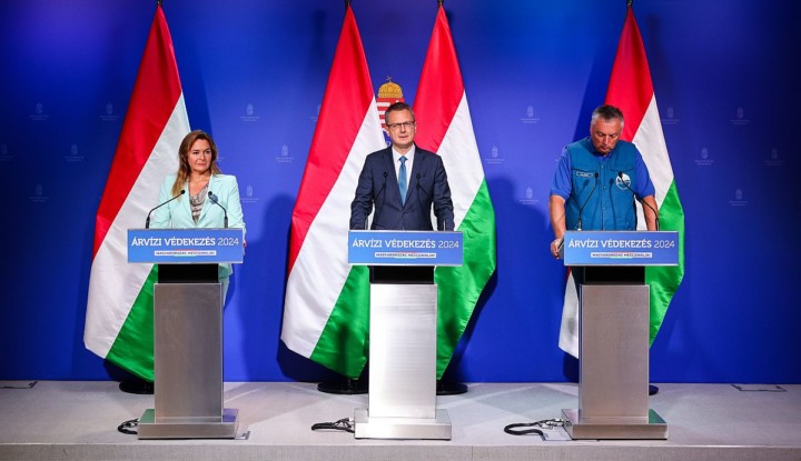 Címlapkép: Vitályos Eszter, Rétvári Bence és Láng István, az Országos Vízügyi Főigazgatóság főigazgatója az árvíz elleni védekezésről tartott sajtótájékoztatón a Miniszterelnöki Kabinetiroda sajtótermében 2024. szeptember 25-én. (Fotó: MTI/Hegedüs Róbert)