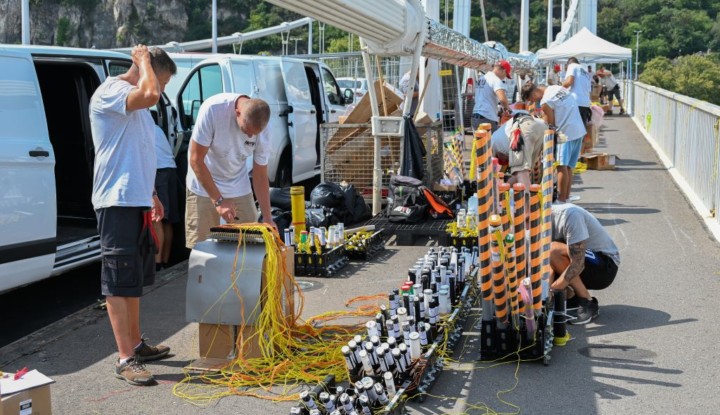 Címlapkép: Az augusztus 20-i tűzijáték pirotechnikai eszközeit telepítik a Nuvu Kft. szakemberei az Erzsébet hídon 2024. augusztus 18-án.