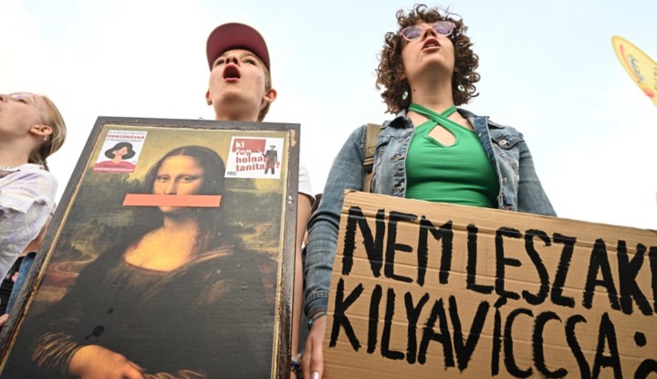 Címlapfotó: Diáktüntetés 2022. június 16-án, a státusztörvény elfogadása után. Fotó: Afp