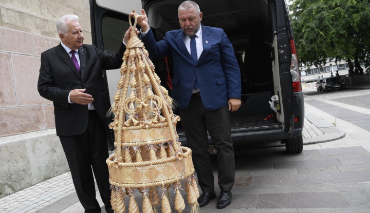 – fogalmazott Jakab István. Az aratókoszorút a Szent István Bazilika újonnan kinevezett plébánoshelyettese, Kovács Zoltán atya vette át, aki imádságban kérte a Jóisten áldását a gazdákra, malmokra, pékekre és az asszonyokra, majd a könyörgést követően áldást mondott az aratókoszorúra, amely október végéig tekinthető meg a Bazilika szentélyében, és az augusztus 20-i Szent Jobb Körmenetben is.