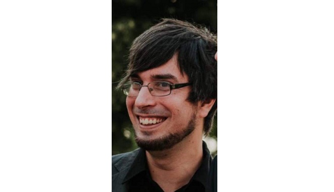 Péter körülbelül 190 centiméter magas, szakállas, szemüveges, barna hajú férfi.