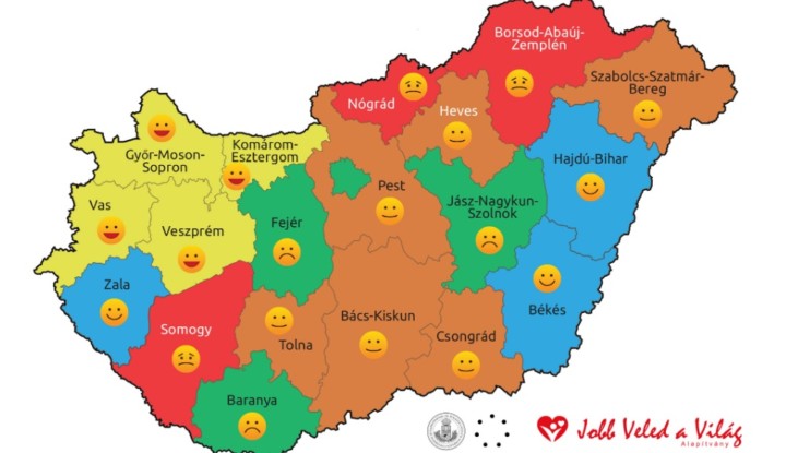 Visszatérve a magyar boldogságtérképre: erről leolvasható, hogy mely régiókban és megyékben milyen mértékben tartják boldognak magukat az emberek. A vizsgálatban – melyben 17-89 éves férfiak és nők vettek részt – a kérdések kitértek az élettel való elégedettség, az érzelmi, a pszichológiai, a szociális és a spirituális jóllét és a mentális egészség szintjének a megállapítására is.