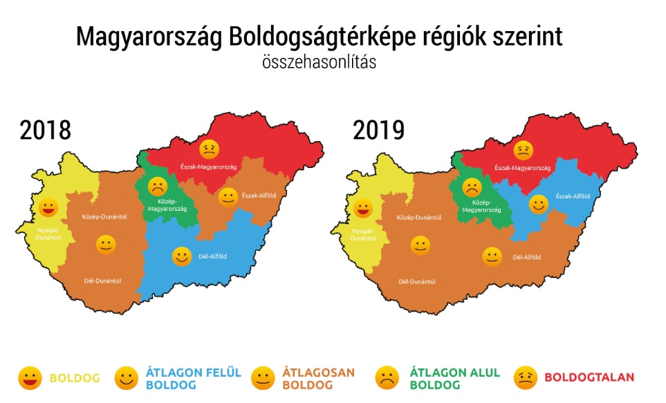 Az eredményeket összegezve megállapítható, hogy a magyar lakosság boldogsságszintje emelkedett a 2016-ban és a 2017-ben mért értékekhez képest. Ahogy már korábban, úgy 2019-ben is a nyugat-dunántúli régió lakossága vallotta a legboldogabbnak magát, míg az észak-magyarországiak lettek a legboldogtalanabbak, habár a tavalyihoz képest ezen a területen is javultak az eredmények.