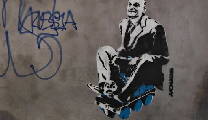 Thomas-on, a kis gőzmozdonyon már többször láthattuk a megfestett miniszterelnököt az elmúlt hónapokban: feltűnt az Erzsébetvárosban, aztán a Szent János kórház falán is. Előbbi még a világhírű street art művész Banksy aláírásával, utóbbi már annak magyarosításával, Basky szignóval.