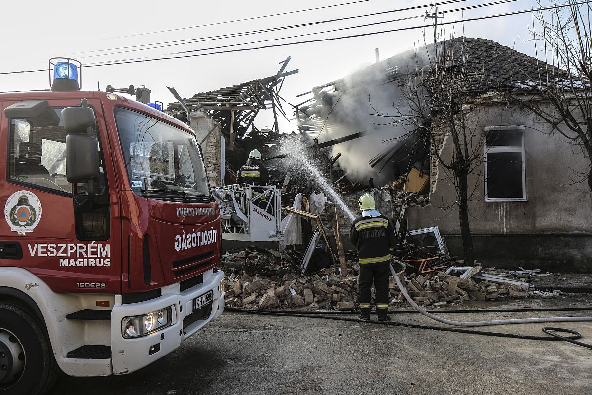 Szolgainé Soós Gabriella elmondta: a robbanás egy négylakásos társasház két lakását érintette, amelyek a detonációt követően kigyulladtak. Az oltást a veszprémi tűzoltók a katasztrófavédelmi műveleti szolgálat irányítása mellett végzik. Nyolc ember elhelyezéséről kell gondoskodni – tette hozzá.