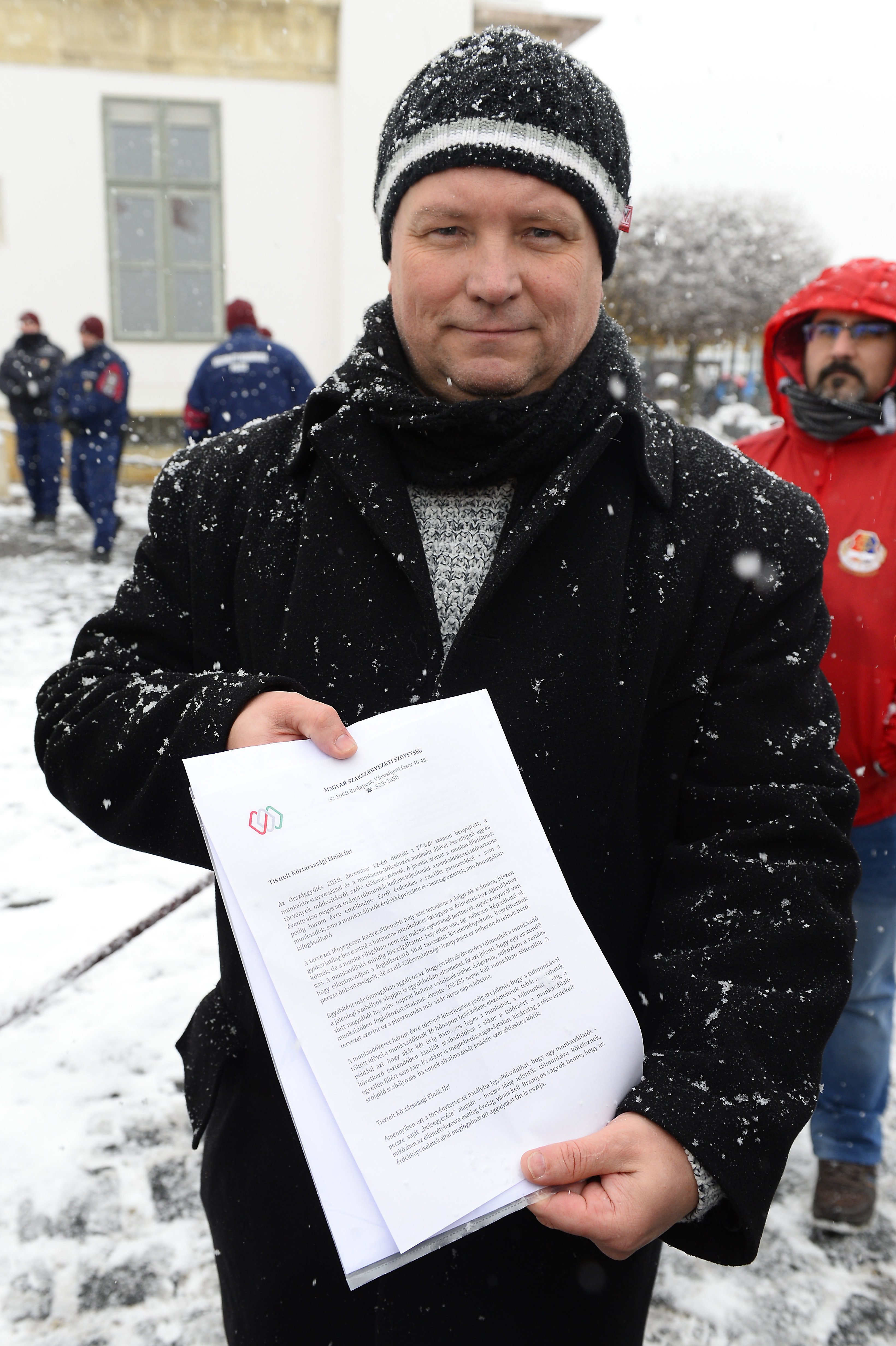 A munka törvénykönyvének módosítása ellen tiltakozó levelet adott át a Köztársasági Elnöki Hivatalnak a Magyar Szakszervezeti Szövetség elnöke szombaton Budapesten.