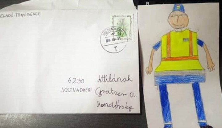 Az egyik közösségi oldal segítségével „kinyomozták” a feladót is. Kiderült, hogy a harmadik osztályos Bence nagy rajongója a rendőröknek, még saját egyenruhája is van. Az Attila nevű törzsőrmesterrel egy nyári rendezvényen találkozott, ezért kapta most tőle a rajzot.