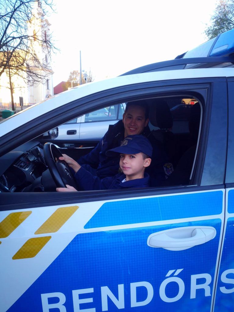A kisfiú pedig megkapta tőle a világ legmenőbb ajándékát: rendőrautóval vitték suliba a leendő „kollégái”, merthogy rendőr lesz belőle, ezt egészen biztosan tudja már.