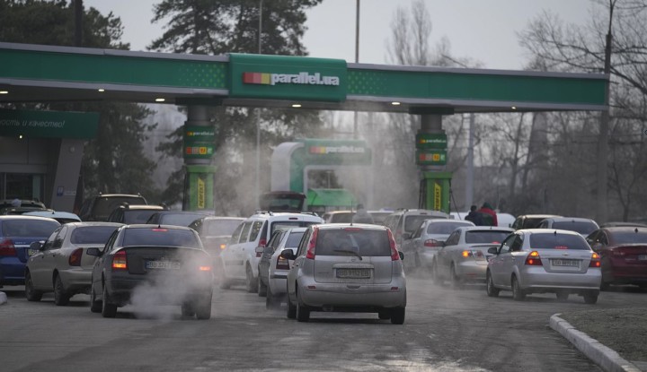 A címlapkép illusztráció: járművek várakoznak üzemanyagra egy benzinkúton a kelet-ukrajnai Szeverodonyeckben 2022. február 24-én. (MTI/AP/Vadim Ghirda)