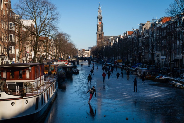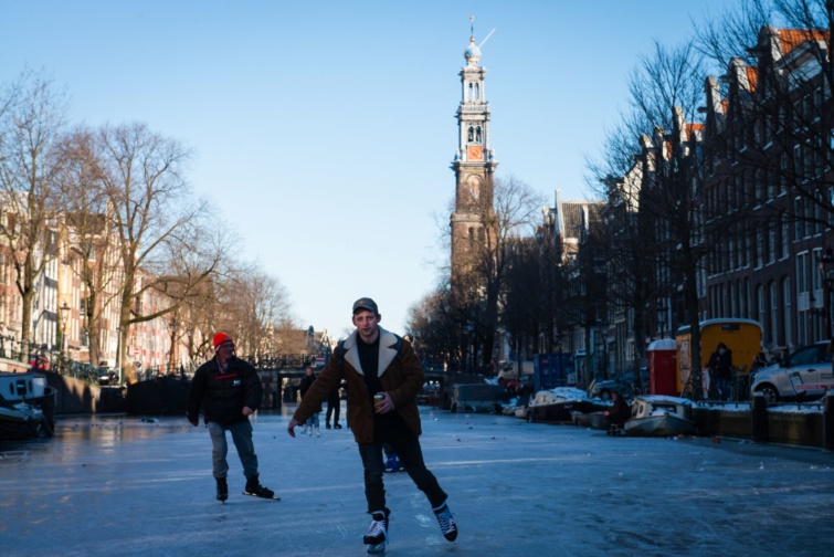 Ha egy-két héten keresztül tartósan -5 fok alatt marad a hőmérséklet Amszterdamban, akkor bizony lehet készíteni a korcsolyákat. A Groenburgwal-csatornán annyira vastag lesz a jégréteg, hogy akár végig is lehet csúszni annak felületén.