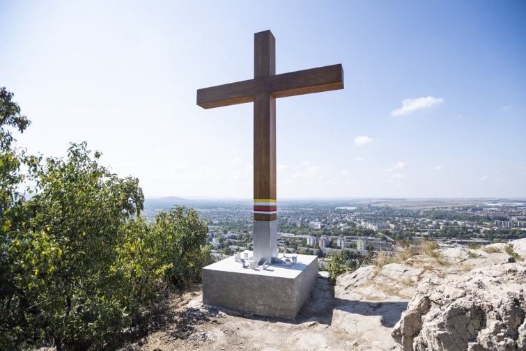 Az alkotás csodaszép környezetben, a városban élők és az autópályán közlekedők számára is jól láthatóhelyen található, melyre méltán lehetünk büszkék. A fa keresztet Gerenday Sándor esperes áldotta meg, melynek belső felére ezt a szöveget vésték: 2021. „Minden forrásom belőled fakad” Eucharisztikus kongresszus.