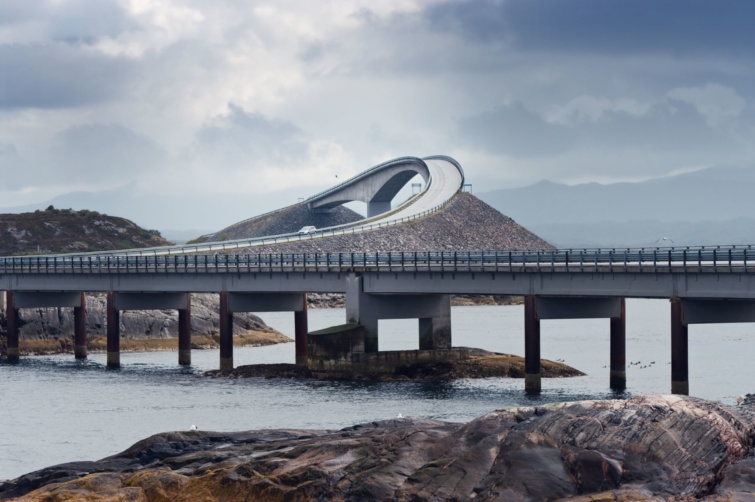 A világ egyik legfestőibb autóútja, ami otthont ad a Storseisundet-hídnak is, amit a „híd a semmibe” megnevezéssel is illetnek. Nagyjából úgy kell elképzelni, mint egy rámpát az ég felé. A Norvég-tenger brutális hullámai viharos időjárási körülmények között gyakran összecsapnak az út felett, ezért erre érdemes felkészülni.