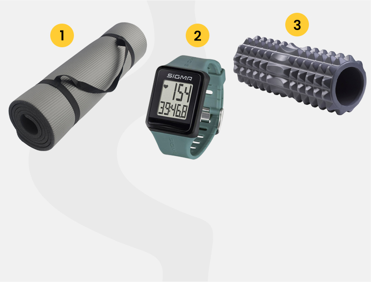 Bár sok gép fel van szerelve pulzusmérővel, kilométer- és kalóriaszámlálóval, azért nem árt, ha beszerzünk egy okosórát, ami figyeli testünk minden rezdülését és hű társunk az edzésben és a mindennapokban. Végül pedig a mozgás után jár egy kis lazítás, amit elősegít egy masszázshenger.