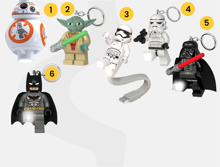 Világító kulcstartó és olvasólámpa a kedvenc hősök LEGO-figuráiból
