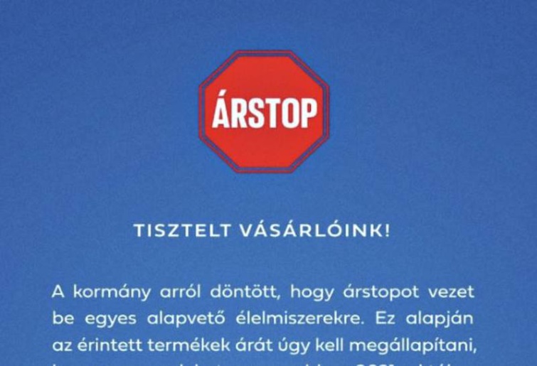 „A kormány arról döntött, hogy árstopot vezet be egyes alapvető élelmiszerekre. Ez alapján az érintett termékek árát úgy kell megállapítani, hogy az nem lehet magasabb a 2021. október 15. napon alkalmazott árnál. Az árstop 2022. február 1-től október 1-ig tart.”