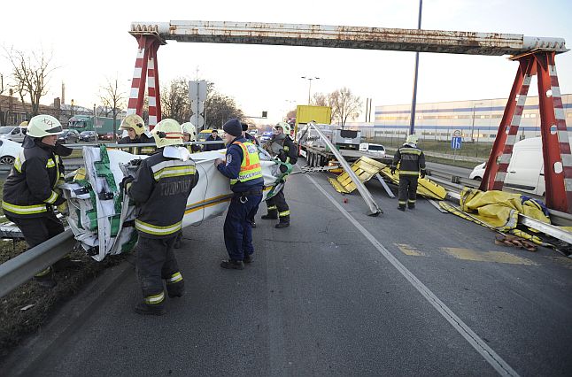 Lebontotta a sofőr a kamiont a ferihegyi gyorsforgalmin - képek