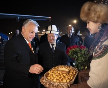 Orbán Viktor turulos fogadtatásban részesült Kirgizisztánban