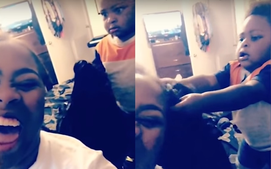 A kisbaba kezében maradt az anyja parókája, figyeld a reakcióját
