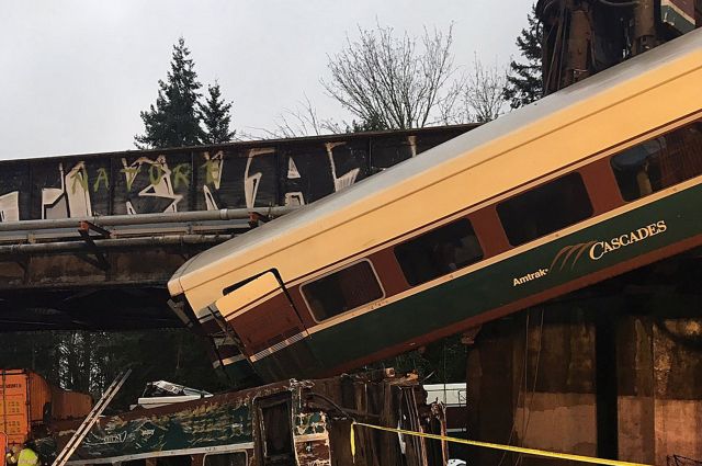 Kisiklott vonat zuhant az autópályára Seattle mellett