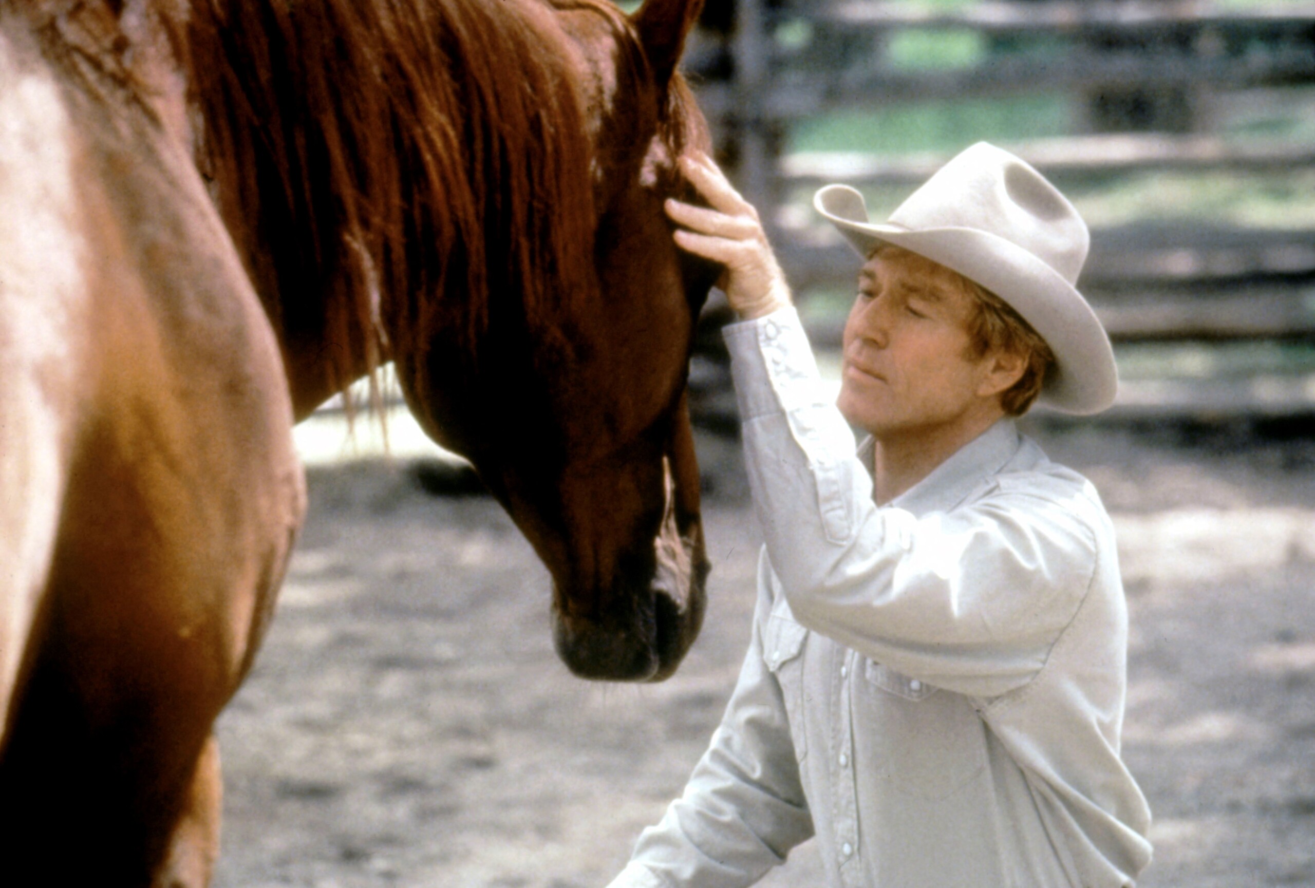 A suttogó (The Horse Whisperer, 1998) - Redford nemcsak főszereplő, hanem rendező is volt ebben a megható drámában. A történet középpontjában egy tragikus lovasbaleset áll, amely örökre megváltoztatja a 13 éves Grace MacLean (az akkor még tinédzser Scarlett Johansson) és szeretett lova, Pilgrim életét. A lány a balesetben elveszíti az egyik lábát, a ló pedig olyan súlyos fizikai és mentális sérüléseket szenved, hogy kezelhetetlenné és agresszívvá válik. Az orvosok az állat elaltatását javasolják, de Grace édesanyja, a céltudatos és nagyvárosi magazinszerkesztő, Annie (Kristin Scott Thomas) képtelen ebbe beletörődni. Végső elkeseredésében Annie hall egy legendás "suttogóról", egy montanai cowboyról, Tom Bookerről (Robert Redford), aki különleges képességgel bír a sérült lovak gyógyításában. Fotó: AFP