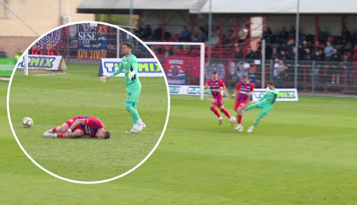 A Szentlőrinc–Vasas Merkantil Bank Liga-meccsen Gyurján Márton, a hazaiak kapusa kirúgás helyett Pethő Bence lábába rúgott, amikor a Vasas támadója blokkolni próbált.