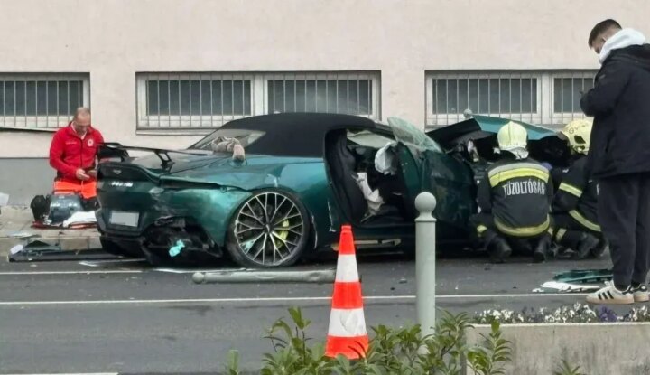 Olvasónk saját autójából látta az Aston Martin mozgását, illetve a baleset előtti másodperceket, majd azt is, ahogy a sportkocsi felvágódik a járdára.