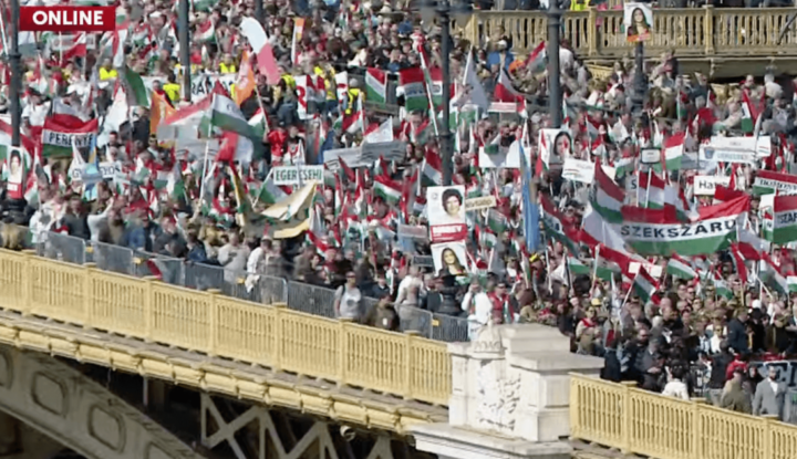 Drónfelvételek kerültek a Hír Tv és az M1 élő adásába az idei Békemenetről, miközben a Tisza Párt szerint határozat tiltotta a drónok felszállását a március 15-i rendezvényükön.