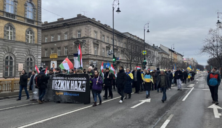 Az orosz–ukrán háború negyedik évfordulójára szervezett tüntetésen Karácsony bocsánatot kért az ukránoktól a kormány miatt, Tompos Márton pedig trágár szavakkal küldte el Orbánt és Putyint is.