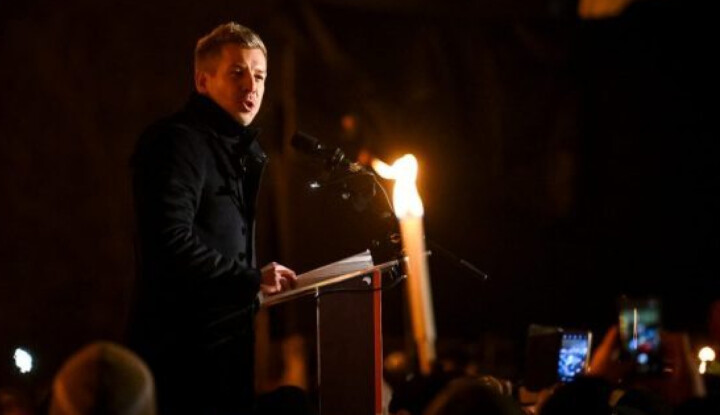 Hatalmas tömeg előtt beszélt Magyar Péter a Sándor Palota előtt.
