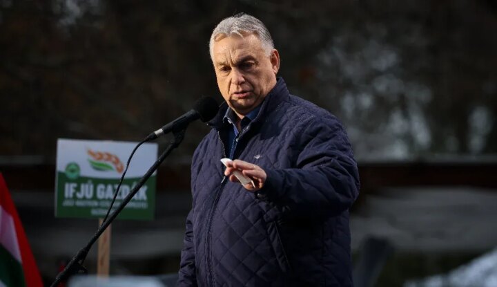 Az esős szolnoki Orbán-fórumra csak néhány magányos tüntető ment ki, miközben Lévai Anikó az első sorokból hallgatta a miniszterelnököt.