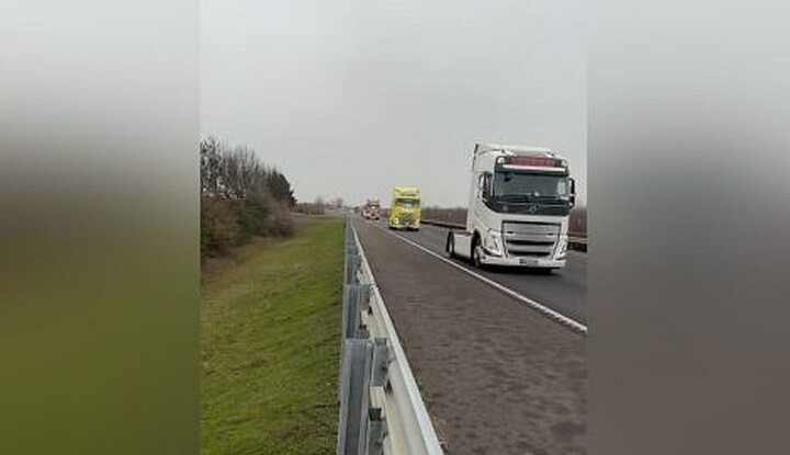 A Több mint Kamionos Facebook-oldalra feltöltött videóban látható, hogyan haladnak Budapest felé a fuvarozók kamionjai hétfő délelőtt az M3-as autópályán.