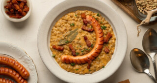 Lencsefőzelék sült kolbásszal