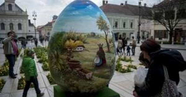 Ismét felállították a Széchenyi téren a két méter magas tojást.