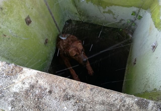 Az eb gazdája azonnal kihívta a kaposvári tűzoltókat, és a kiérkező egység egyik tagja mentőkötél segítségével le is ereszkedett a mélybe az állat után. Miután megragadta a rémült házőrzőt, kollégái a felszínre húzták az átázott bundájú négylábúval együtt.