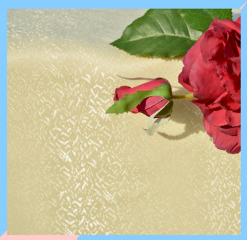 Diszkrét, mégis nagyon ünnepi, amikor egy olyan, anyagában mintázott abroszt választunk, ami fényesen csillog itt-ott, ahol épp megvilágítják a lámpák, vagy a gyertyák fényei. Mi mindenképp valamilyen világos színből vinnénk ilyet haza – a krémszín tökéletes választás, hisz szerény, természetközeli árnyalat, mégsem egyszerű, “unalmas” fehér.