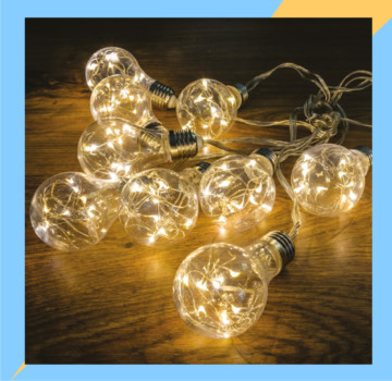 Bár ez alapvetően nyári világítás, aki sablonosnak érzi már a sok jégcsap, hópihe, valamint karácsonyfa-formájú izzót, az bátran vesse be télen is a villanykörtéket! Pláne, hogy valamikor, gyerekkorunkban még lehetett is kapni villanykörte alakú csoki-karácsonyfadíszt. (Nem tudja valaki, lehet-e még azt kapni valahol?)