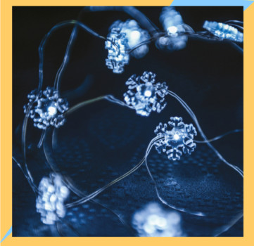 A jégcsap mellé a másik tökéletes izzósor a hópehely alakú, különösen nálunk, a sok nem fehér karácsonyunkkal. A hideg fehér színű LED-izzók tényleg tündérfényes hatást keltenek az átlátszó diódákban.