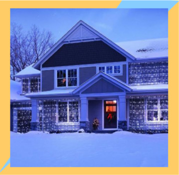 A téli külső dekoráció elmaradhatatlan szereplői a jégcsapok. Ebben a példányban a diódák kékek, az izzók pedig átlátszóak, ezáltal érhető el a hideg, jégszerű színezet.