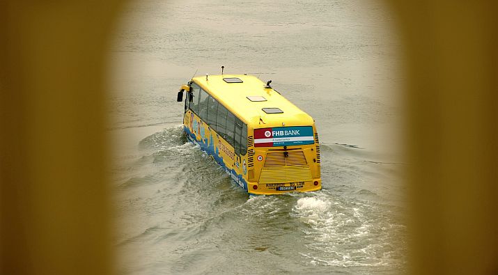 Partra kapaszkodás során a Dunában rekedt egy kétéltű busz Budapesten vasárnap este.
