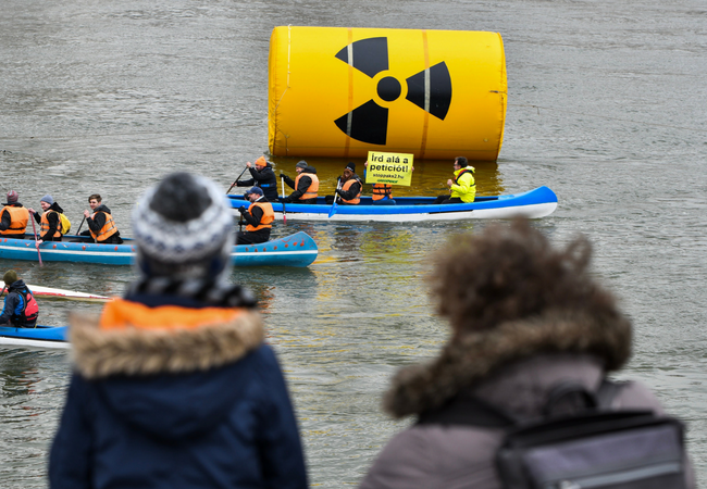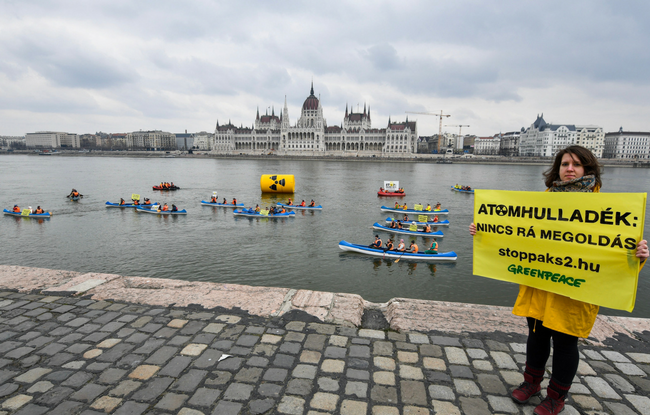 A Greenpeace Magyarország aktivistái kenuba ültek, és a Dunán tiltakoztak a Paks 2 ellen. A szervezet 25 ezer emberrel petíciót is aláírt már, és szeretné elérni, hogy a kormány állítsa le beruházást. Az aktivisták elutasítják az atomenergiát, mondván, veszélyes – írja az MNO.