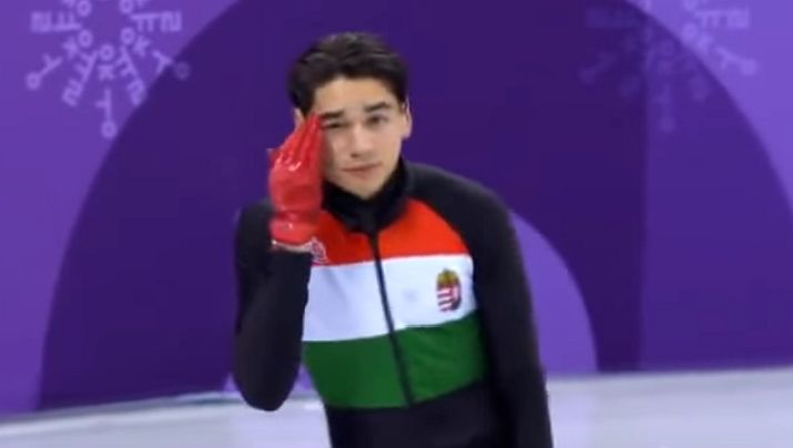 A február 17-ei, ezer méteres férfi rövidpályás gyorskorcsolya-döntő előtt az egyik koreai önkéntes már tudta is, mi következik, és a háttérben ő is eljátszotta a mozdulatsort párhuzamosan a versenyzővel: