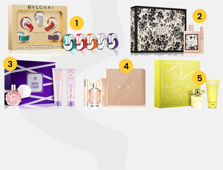 A Bvlgari miniatűr kollekciója valósággal vonzza a tekintetet. Melyik nő ne akarna egy gyűjteményt ötféle mennyei Bvlgari parfümből? Ha netán jártas vagy a márka parfümneveiben, a kollekció összetétele: Omnia Paraiba + Omnia Coral + Omnia Crystalline + Omnia Indian Garnet + Omnia Amethyste. A csodaszép, különböző színű üvegcsék pedig még azután is a szoba díszei lesznek, hogy kiürültek.