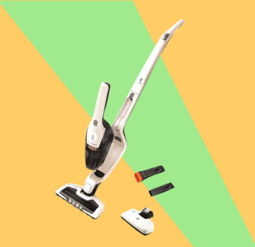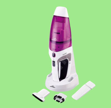 Semmi hajolgatás: állótartályon töltődik és tárolódik, aztán csak megfogod, és már mehetsz is takarítani. A rajta lévő kis kézi morzsaporszívót pedig egy pillanat alatt leveheted, hogy felporszívózd vele az asztalt, vagy más bútorokat.
