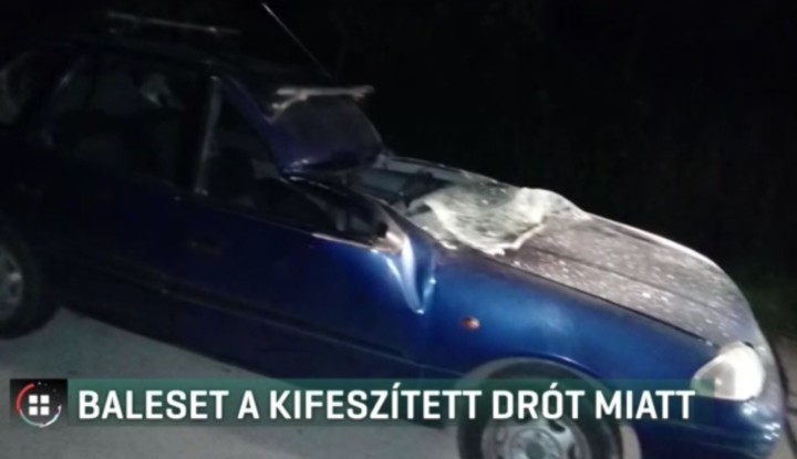 Szinte az egész autó elejét legyalulta és még a vezetőfülkét is kettévágta egy út felett kifeszített drótkötél – csak a szerencsén múlt, hogy a vezető fejét nem vágta el – számolt be a balesetet szenvedett férfi az RTL Klub Híradójában.