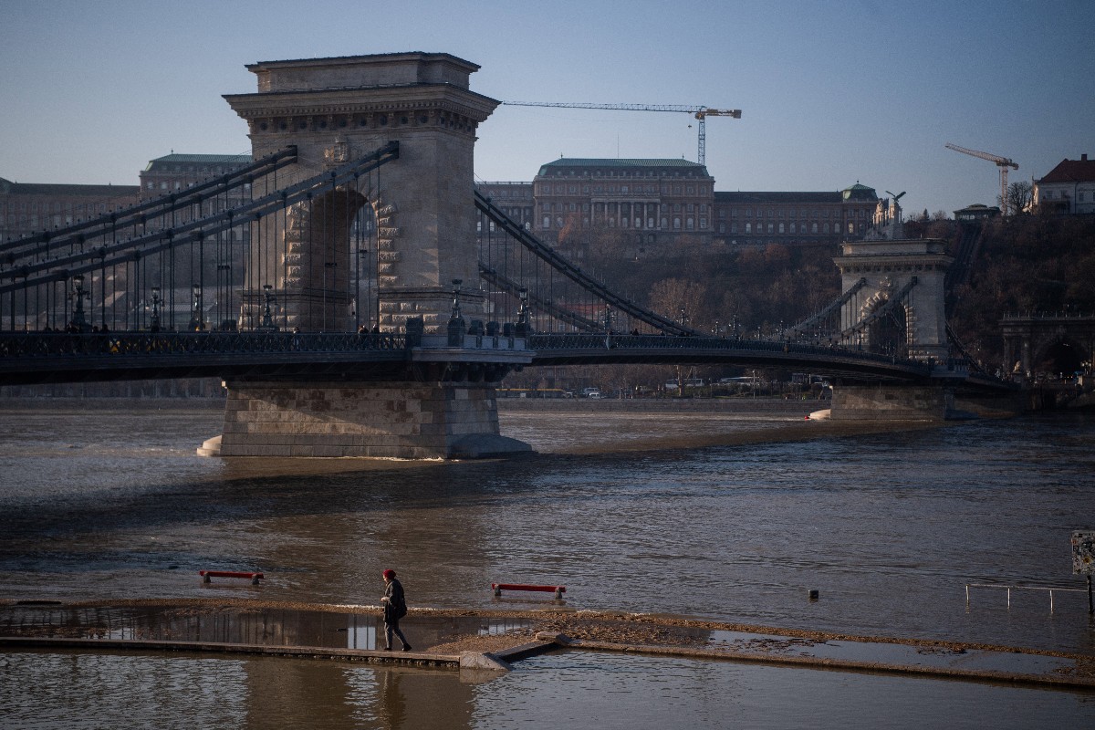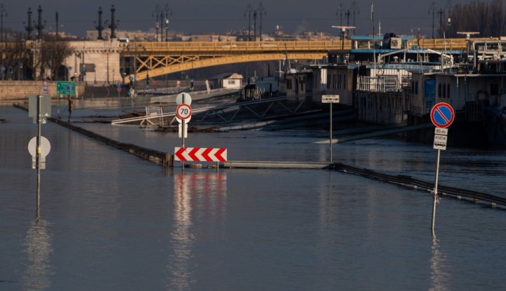 A kiáradt Duna Budapesten, az Antall József rakparton, szemben a Lánchíddal. MTI/Balogh Zoltán