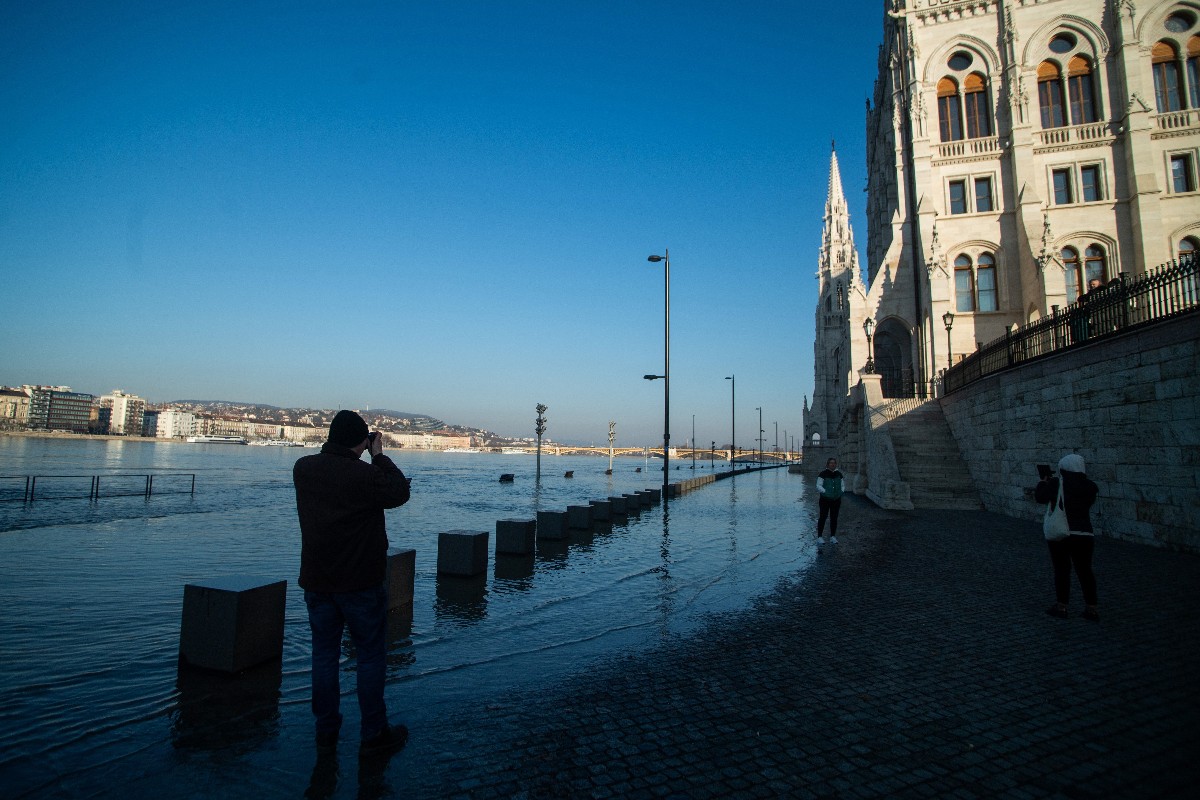 Hosszan elnyúló tetőzések, lassú apadás kíséri a dunai árhullámot; Budapesten szerdán 20 órakor tetőzött az árhullám, ekkor a legmagasabb vízállás 693 centiméter volt.