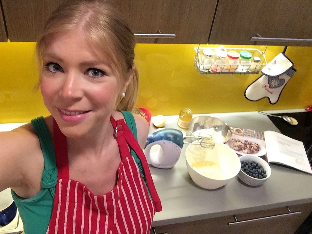 Egyértelmű volt számomra, hogy a teszt csakis úgy lehet hiteles, ha megcsinálok legalább egy valamit a könyvből (és jobb híján rossz minőségű telefonos fotókkal igazolom ezt). Aztán végül is három valami lett belőle: egy főétel, egy desszert, és a kettő között egy májkrém – de azt nem számíthatom bele a tesztbe, mert nem követtem pontosan. Kihagytam belőle a lilahagymát. (Legyen elég annyi, hogy ahogy kész lett, az éppen akkor átugró ismerősöm már be is nyomott belőle egy adagot két kenyérszeleten, és azt mondta közben, hogy „Mmmmm! Mmmmm!!!”)